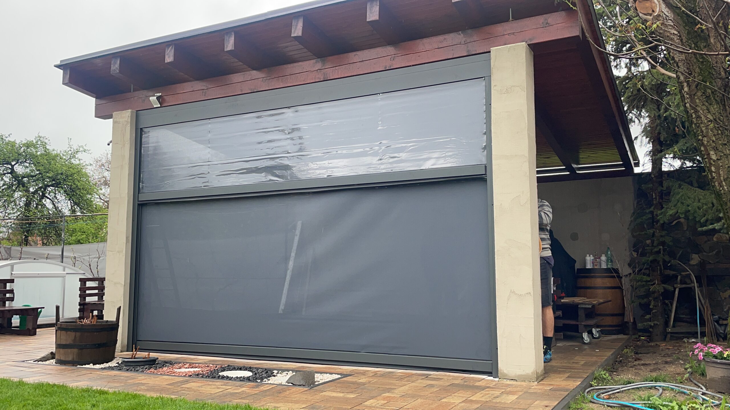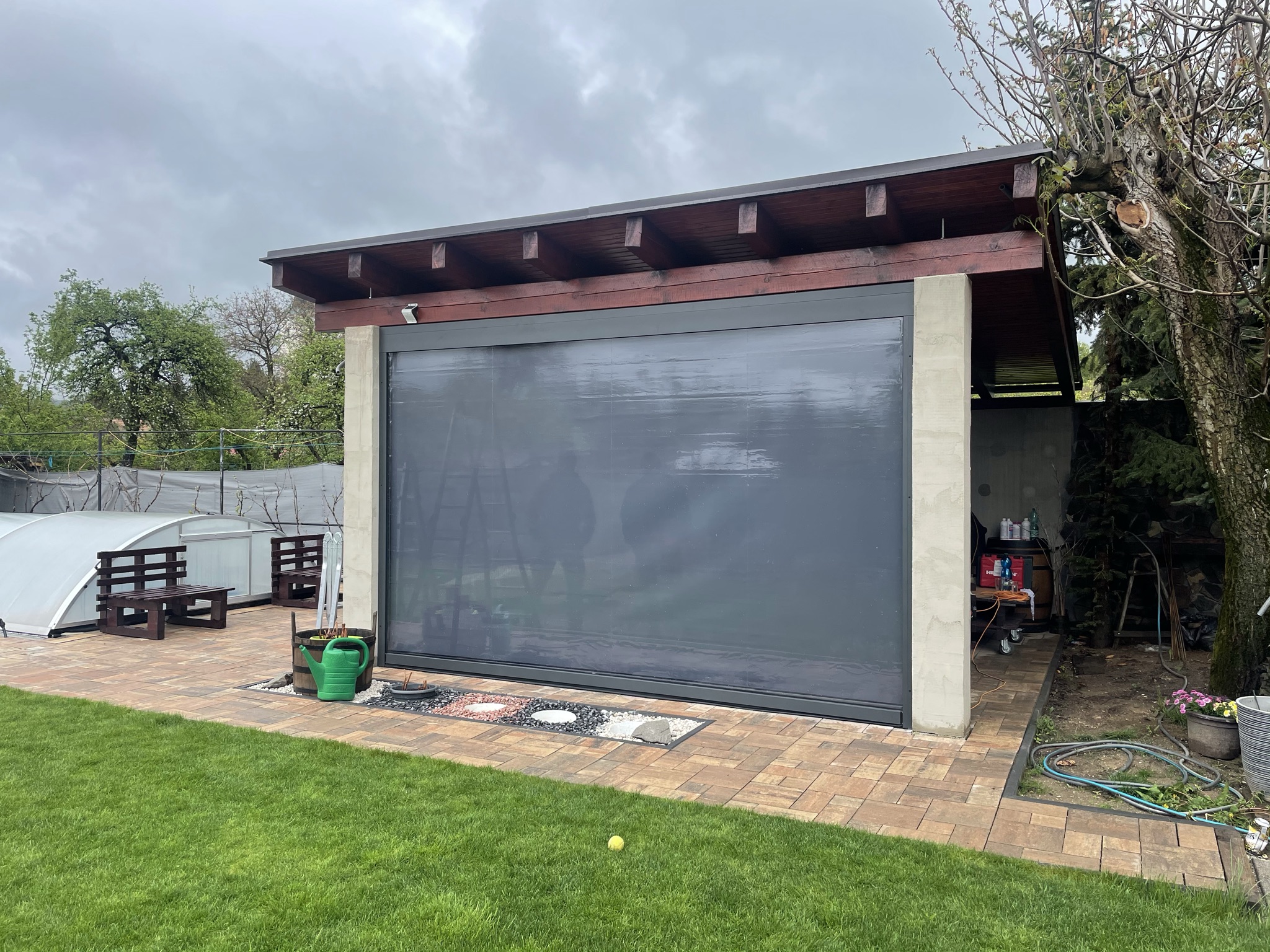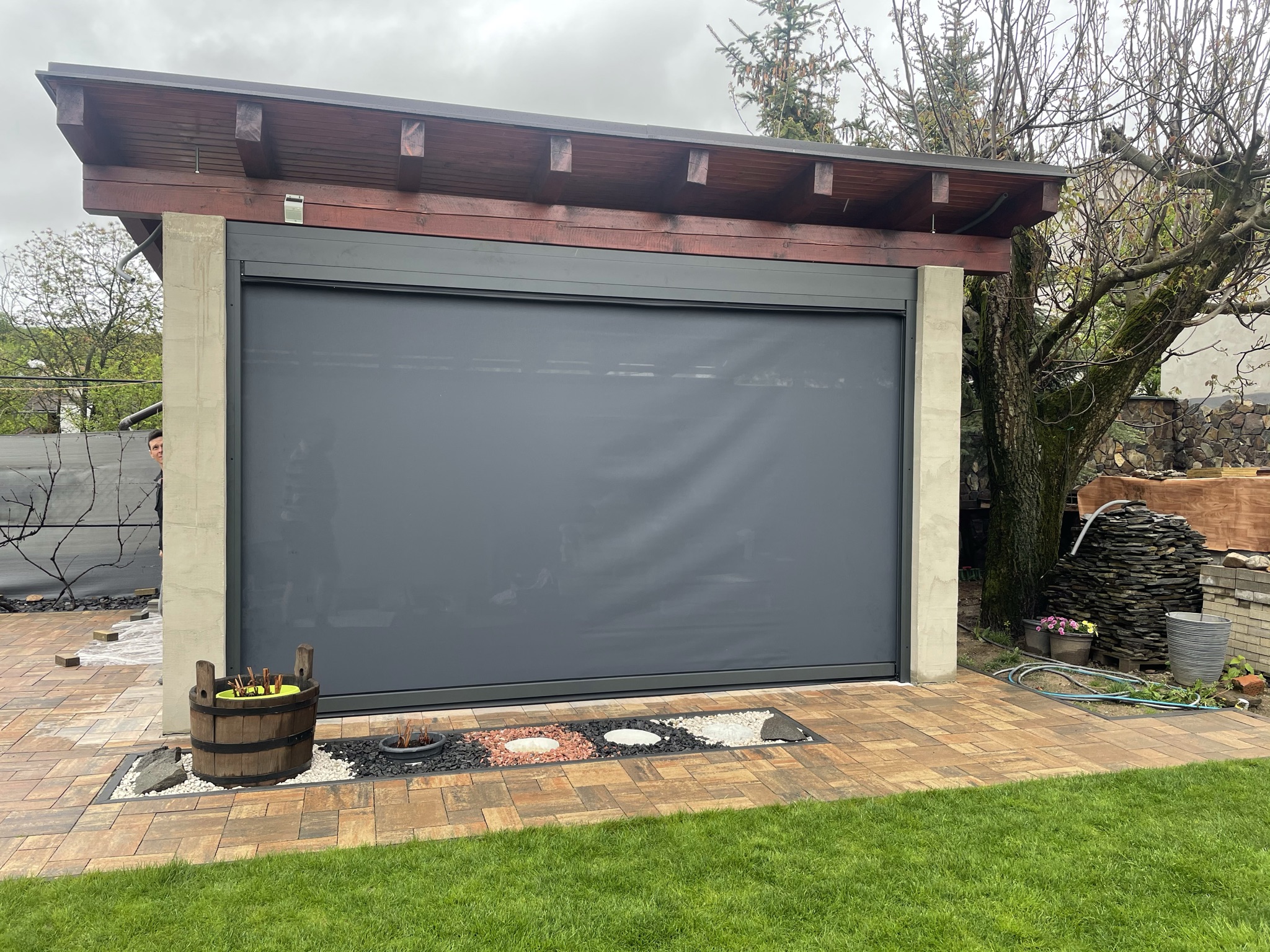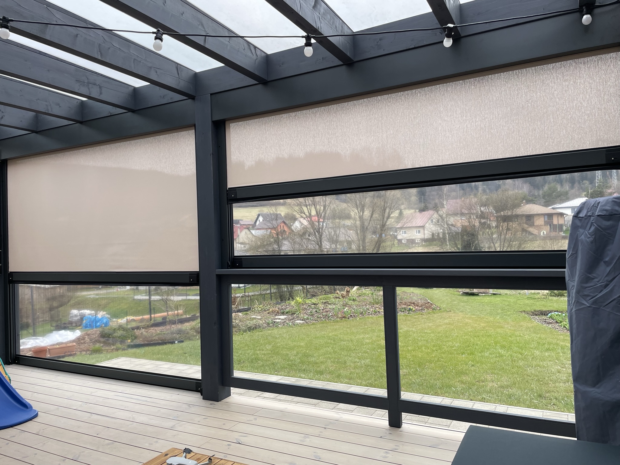 Výplne sú upevnené k rámom hliníkovej konštrukcie s navíjacím mechanizmom a ZIPOVÝM uchytením.