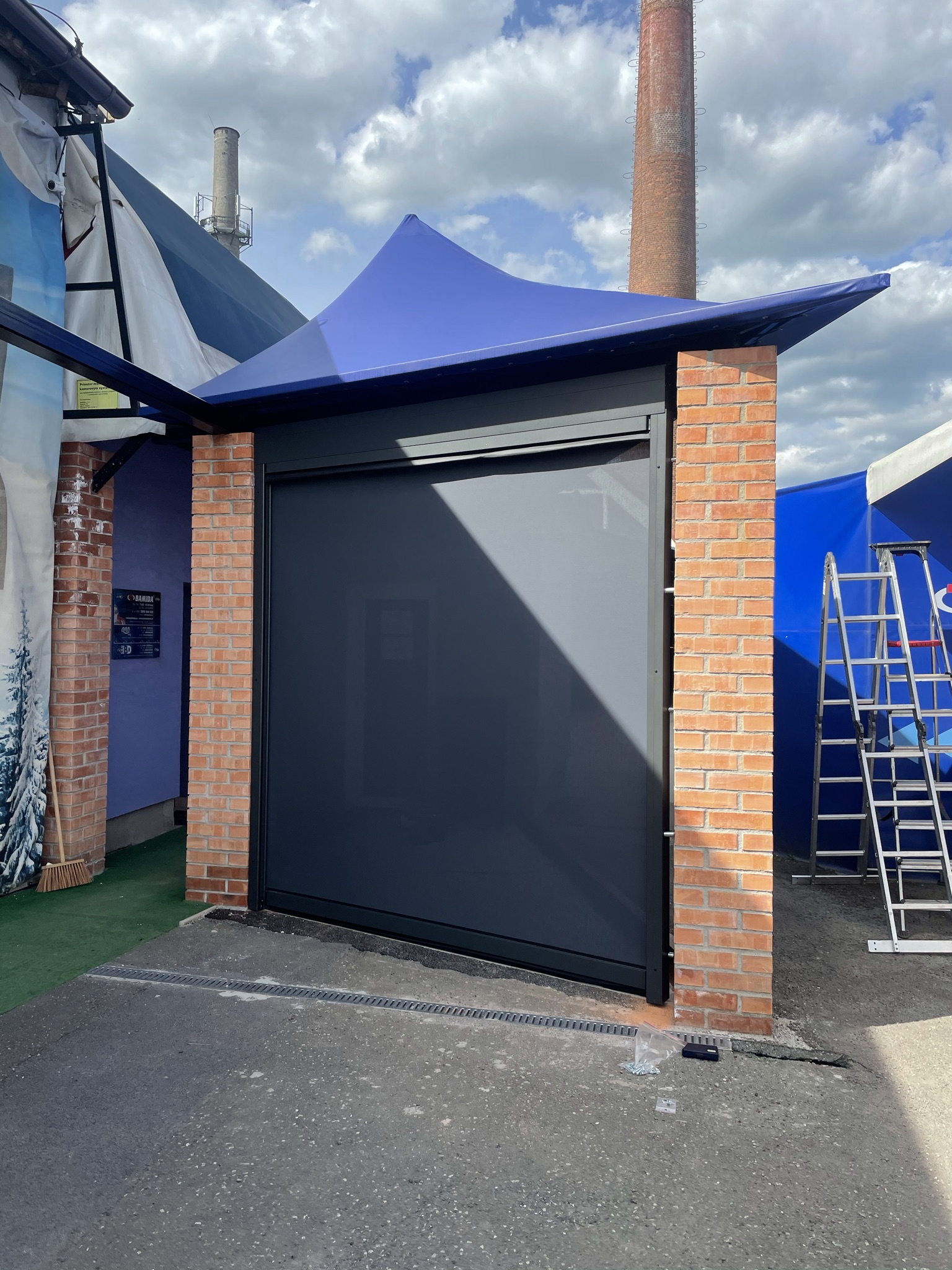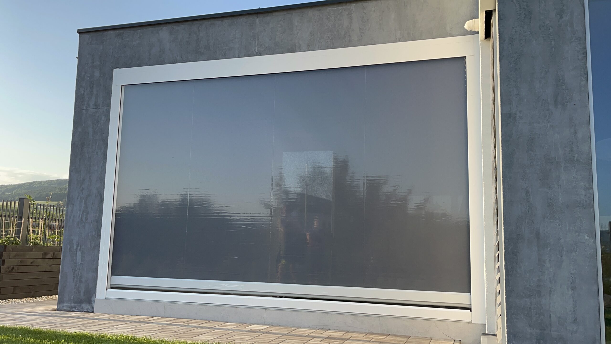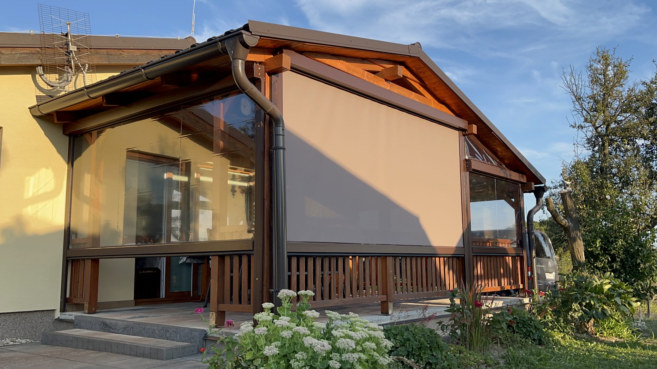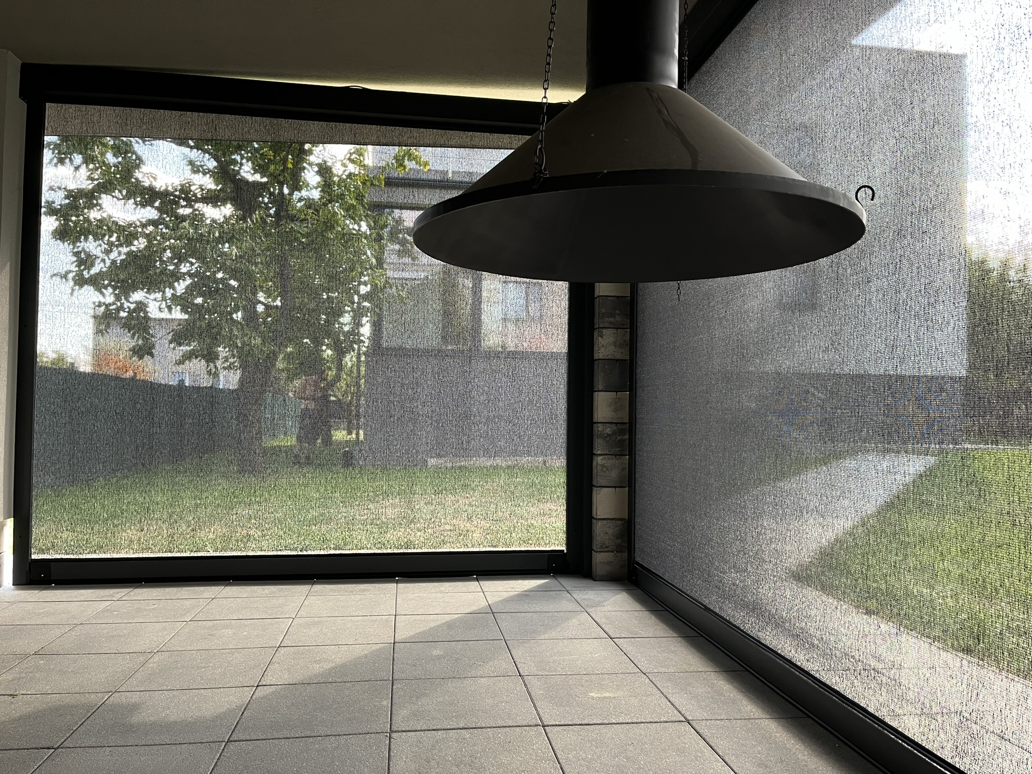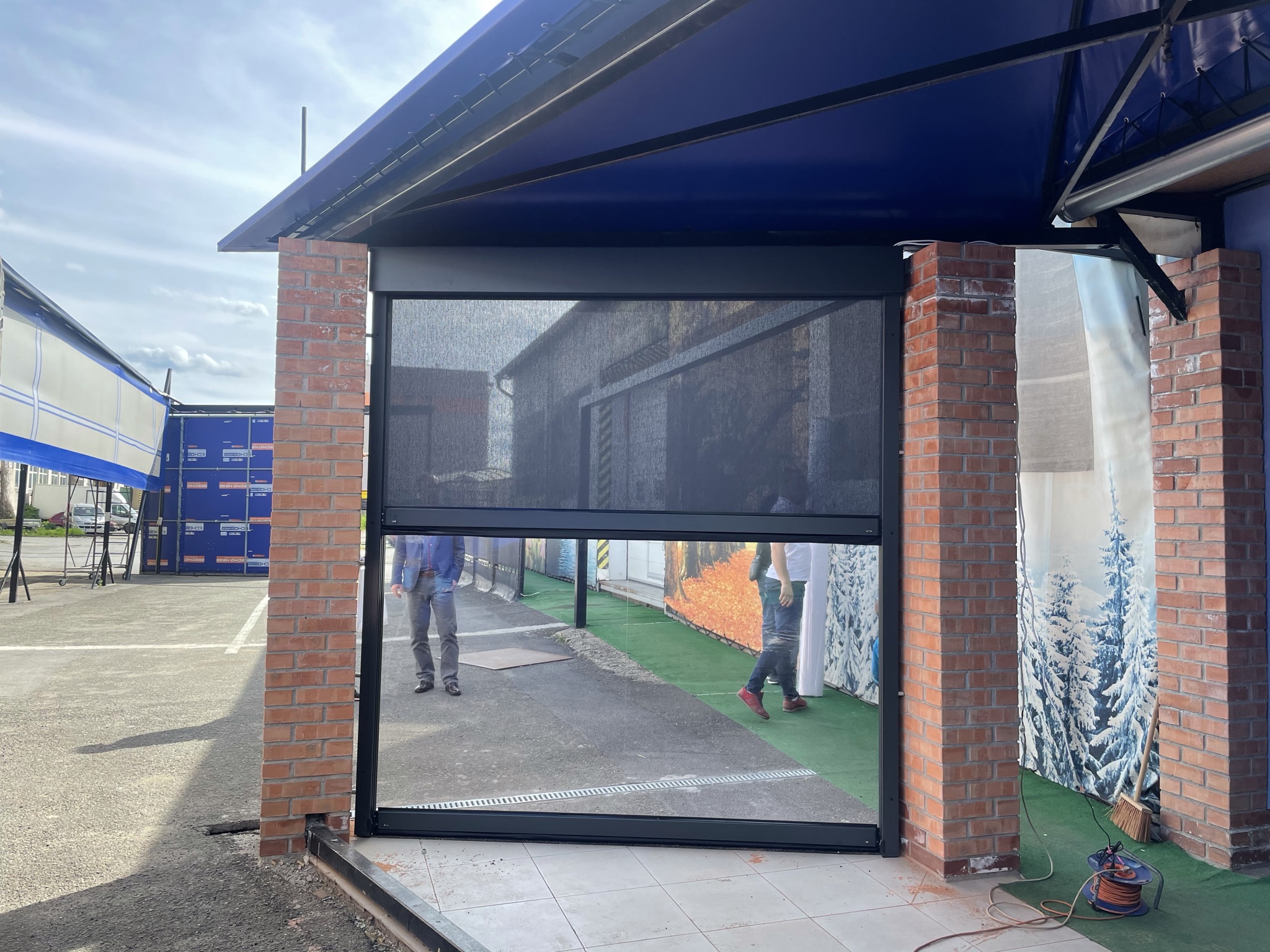 Výplne sú upevnené k rámom hliníkovej konštrukcie s navíjacím mechanizmom a ZIPOVÝM uchytením.